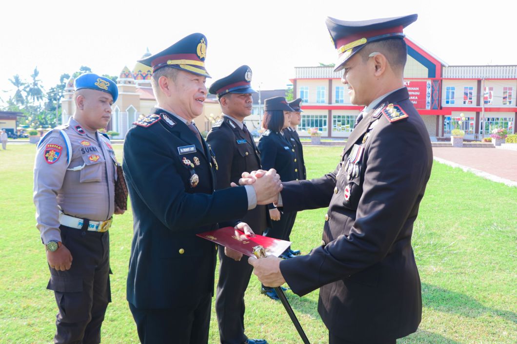 Kapolres menegaskan bahwa penghargaan tersebut merupakan bentuk pengakuan negara atas loyalitas, integritas, dan pengabdian tanpa cela para personel Polri dalam menjalankan tugas.