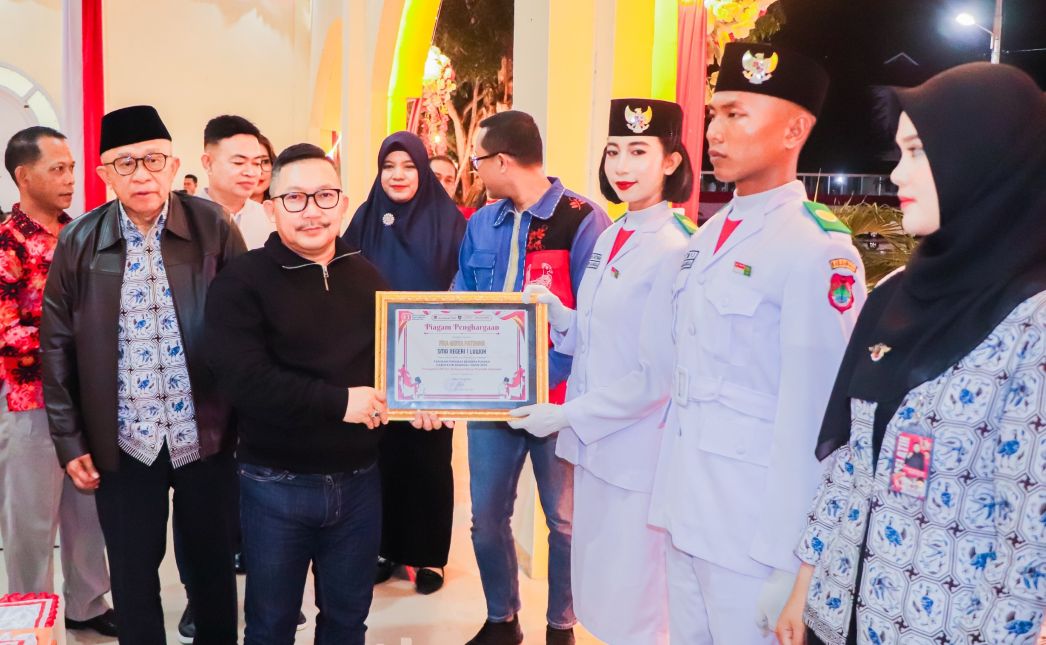 Penyerahan penghargaan itu tepat pada puncak peringatan HUT RI ke 80, pada kegiatan ramah tamah bertempat Lapangan Tribun Mirqan, Minggu malam (17/8/2025).