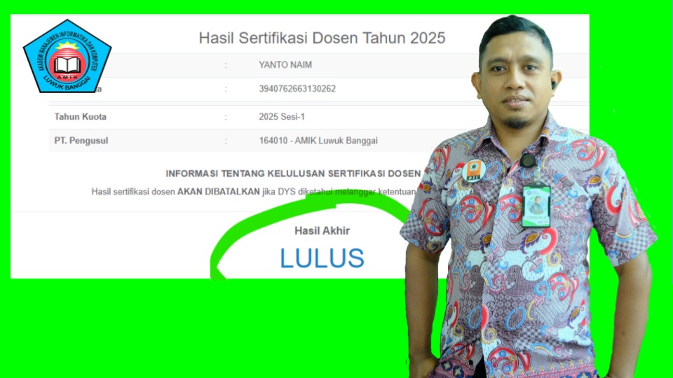 Dosen AMIK Luwuk Ir. Yanto Naim Lulus SERDOS SMART 2025