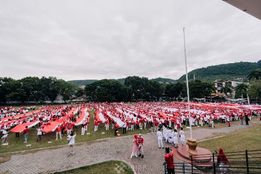 Tidak hanya iringi-iringan jalan kaki. Peserta Kirab Merah Putih juga membentangkan bendera Merah Putih sepanjang 1 Kilometer, mulai dari Alun-alun Kota Luwuk hingga pantai Kilometer 5.