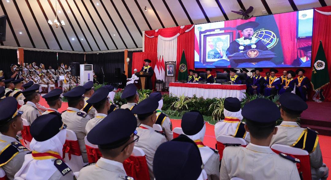 Suasana wisuda 624 Taruna/i Sekolah Tinggi Pertanahan Nasional (STPN) pada Sabtu (30/08/2025).
