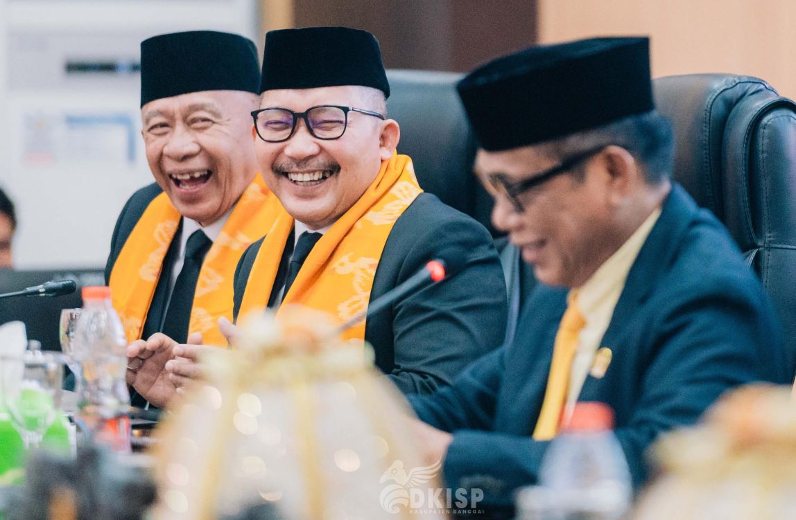 Bupati Banggai H. Amirudin (tengah) dan Wakil Bupati Furqanuddin Masulili bersama Ketua DPRD Banggai H. Saripudin Tjatjo, pada rapat paripurna DPRD dengan agenda pidato perdana, bertempat ruang rapat kantor DPRD Banggai, Rabu (04/06/2025). (Foto DKISP Banggai)