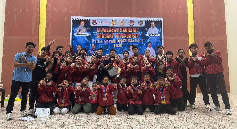 Para juara pada kejuaraan Shokaido Karate Banggai Bersaudara Piala Ketua FORKI Banggai Tahun 2025, di Kecamatan Toili