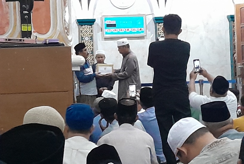 Tim safari Ramadhan Pemprov Sulteng menyerahkan bingkisan kepada pengurus DKM Agung An-Nuur Luwuk, tadi malam. (Foto Sofyan Labolo Luwuk Times)