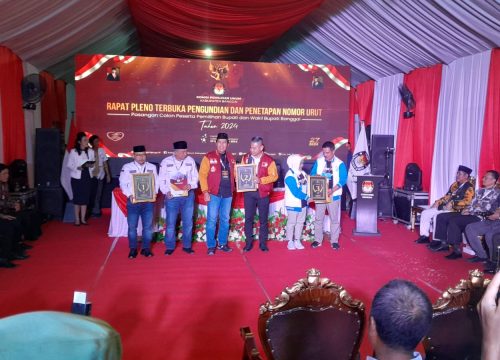 BANGGAI— Komisi Pemilihan Umum (KPU) Kabupaten Banggai menggelar sidang pleno terbuka pengundian dan penetapan nomor urut pasangan Calon Bupati dan Wakil Bupati Banggai pada pemilihan serentak Tahun 2024 di kantor SELENGKAPNYA