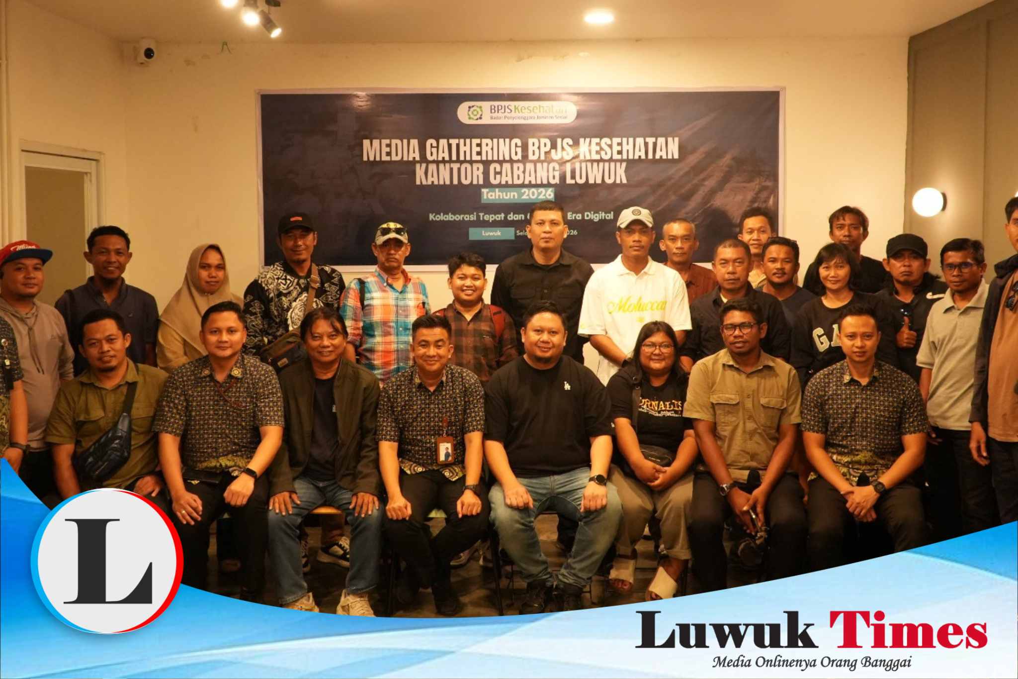 Kepala BPJS Kesehatan Cabang Luwuk, Mitra Akbar dan Kepala DKISP Banggai Lesmana Kulab foto bersama dengan para awak media di Luwuk, Selasa (28/04).